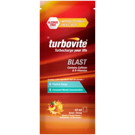 | What's in the box | 48x 10ml Turbovite Blast Alcohol Free Mango & Orange Flavoured Syrup Sachet |